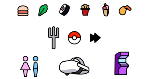 Pour avoir une signalisation au sain de l'événement, j'ai crée un set d'icone. Les icones doivent toute être visible sur un plan, c'est pouquoi tout les pictograme ont peut de detail, et un gros ligne art.
